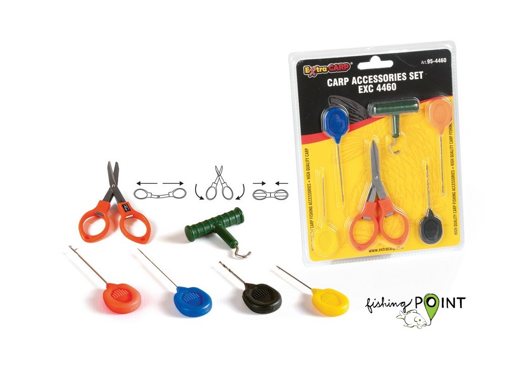 Nová praktická šestidílná sada od značky Extra Carp skládající se z jehel, vrtáčku, nůžek a utahovače. Součásti: 1x Spojovací jehla 1x Boilie jehla 1x Boilie vrtáček 1x Nástražní jehla Skládací nůžky Utahovač uzlůDoplňkové parametry