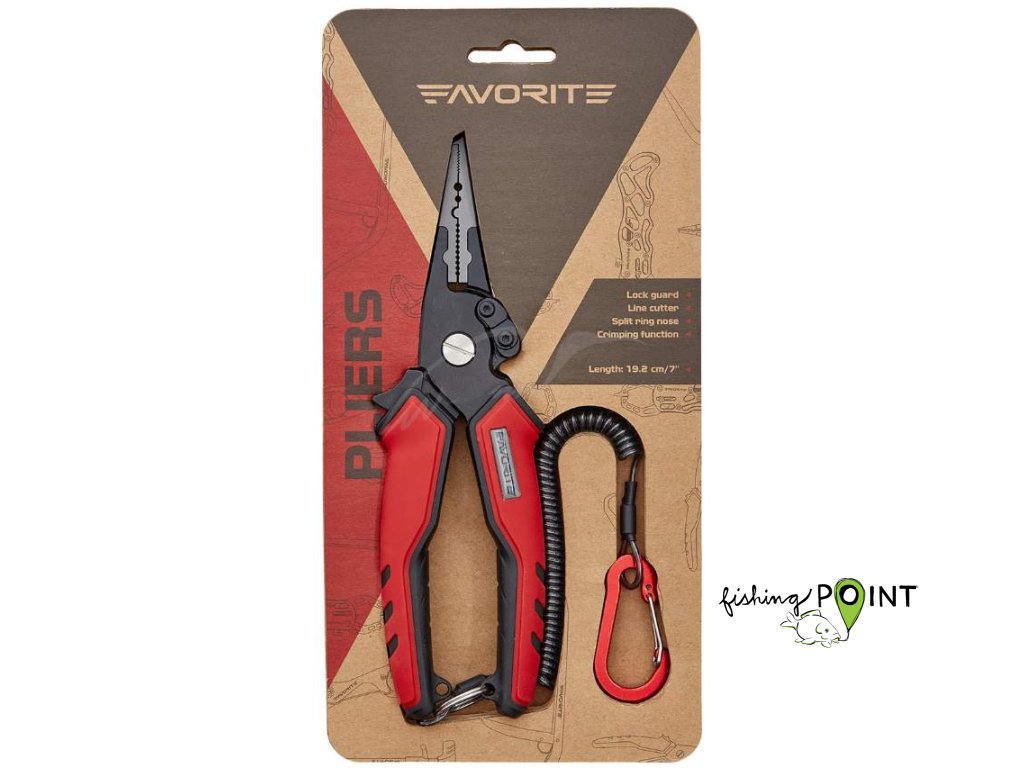 Multifunkční kleště Favorite slouží ke stříhání vlasců a pletených šnůr, otevírání kroužků. Délka 19,2 cm Hmotnost 117gDoplňkové parametry