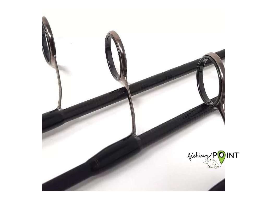 vysokomodulový uhlík Toray 30T+40T, s technologií MLS (vícevrstvá struktura) štíhlé vodicí "T" kroužky s K designem a profilem