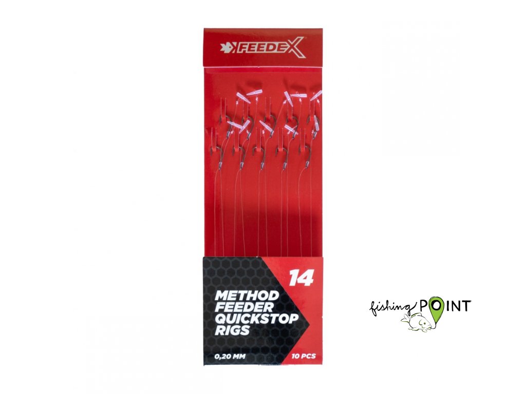Method feeder návazce s nekonečnou zarážkou jsou určené pro malé peletky, boilie a podobné nástrahy. Jsou osazené profesionálním háčkem, kteří používají mnozí závodníci, a fluorocarbonem o délce 10 cm.Doplňkové parametry
