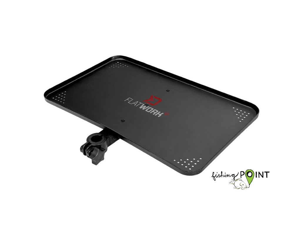 FlatWORK je neocenitelným pomocníkem při tvorbě montáží, přípravě krmení, nebo si na něj jednoduše uložíte potřebné komponenty k lovu, které tak budou vždy doslova při ruce. Vyvýšené okraje po celém obvodu zamezí pádu drobností na zem. Rohy tácku jsou zaoblené, díky čemuž nedojde k možnému nepříjemnému zranění, které by hrozilo při ostrých rozích. V každém z rohů je navíc několik dírek. Máte tak jistotu, že během deště nebo v případě rozlití kapaliny na tácku tekutina nezůstane, ale spolehlivě odteče bez nutnosti demontáže tácku z křesla. FlatWORK je prostě univerzální pomocník, díky kterému budete u vody pohotovější a potřebné věci budete mít vždy po ruce.