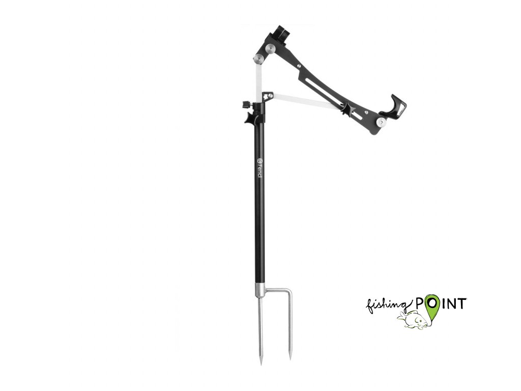Celokovový Feederový stojan vhodný i pro lov na vyvěšenou. Široká variabilita nastavení úhlu prutu, otočné tělo, s jednoduchou aretací, která brání otočení stojanu i při silném větru a razantním záběru.Po zašlápnutí stojanu do země, lze snadno a intuitivně díky možnosti otáčení středového dílu stojanu a variability jakéhokoli úhlu prutu nastavit stojan tak, aby došlo k dokonalému napnutí vlasce.