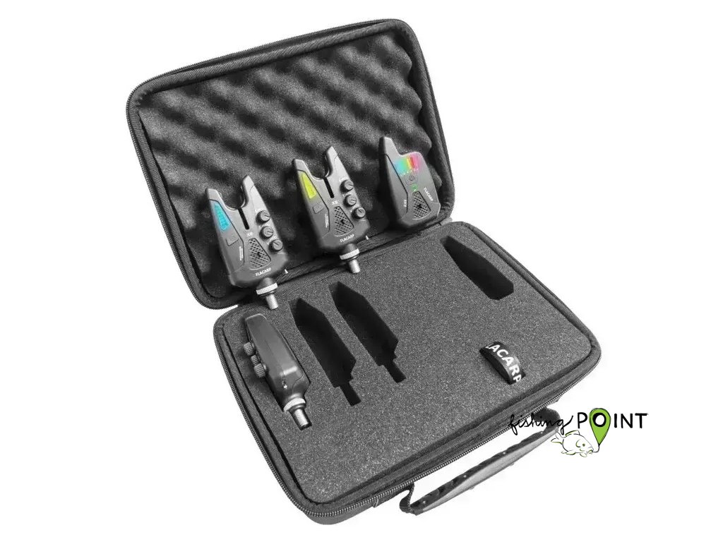 Vyhodnocuje alarmy z pohybových čidel i otřesových senzorůFLACARP. Nyní s možností blokace alarmu při záběru (při zdoláváníryby není rybář rušen opakujícím se alarmem z pohybových čidel).Alarm lze vypnout i pouhým stiskem tlačítka přímo na příposlechu(vypne se na 5 minut od posledního registrovaného pohybu).