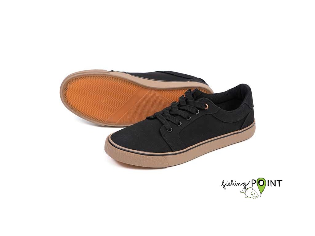 Pohodlné plátěné boty kombinaci černé a tříslové barvyPlátěný svršek