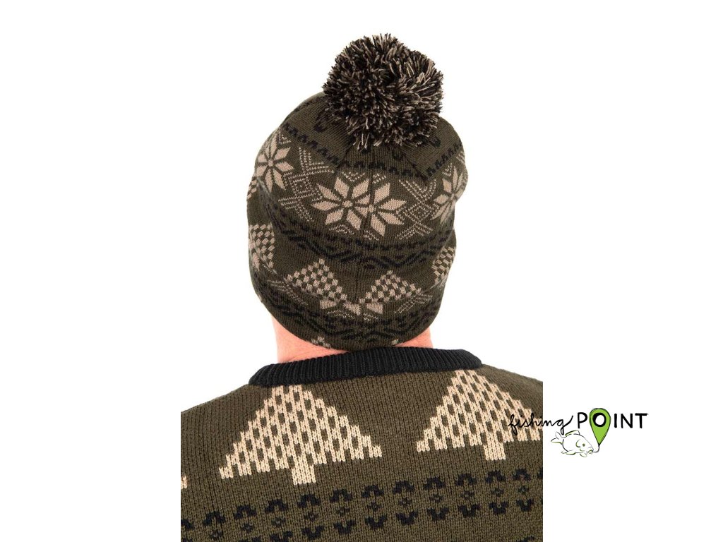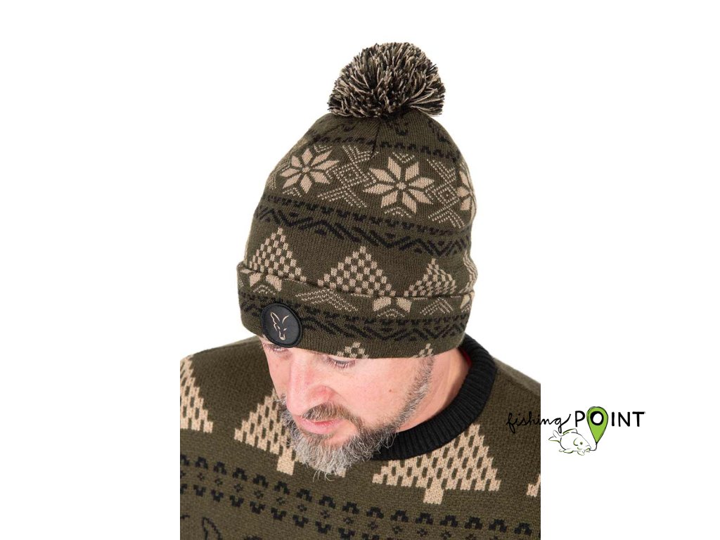 Fox pletená čepice s bambulí s vánočním vzorem
