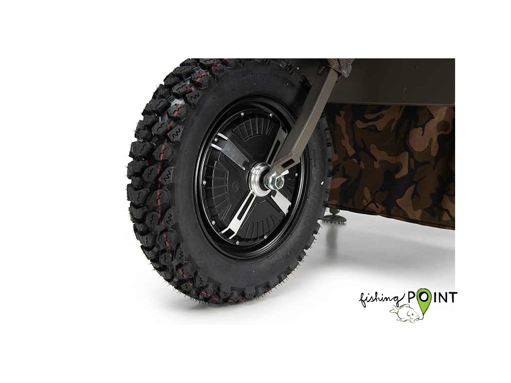 Bezkonkurenční 3 kolový transportní vozík s vlastním pohonem si poradí s rostoucím objemem vybavení na dlouhých výpraváchVelký výkon 350W dodávaný 24V motorem v náboji