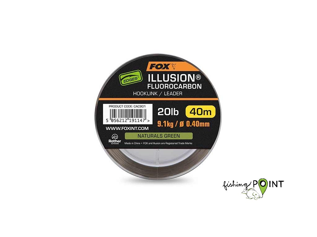 Fox International Fluorocarbon Edges Illusion Hooklink/Leader 20lb 9.1kg (0.40mm) x 40m - Naturals Green