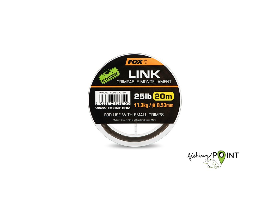 Návazcové vlasce Edges Link byly speciálně navrženy tak, aby dokonale pracovaly s krimpovacími dutinkami Edges Crimps pro vytvoření dokonale úhledného krimpovaného návazce. Ideální pro přípravu montáží s tuhou částí, jako jsou Hinge Rig, Ronnie/Spinner Rig a varianty Combi Rigs. K dostání ve dvou průměrech /pevnostech, které byly navrženy tak, aby odpovídaly velikosti krimpovacích dutinek Edges Crimps např. 25lb Link sedí do malé dutinky a 35lb Link zase do dutinky velikosti medium. Vytváří tak nejsilnější možné spojení, eliminuje nespolehlivé uzly a lze sni mini snadno dosáhnout přesné délky návazce. Monofilní návazcový vlasec V barvě Trans Khaki Navržený pro práci s Edges Crimps Vytváří dokonale tuhé části Ideální pro Hinge, Ronnie/Spinner a kombinované montáže K dostání ve 0,53mm/25lb a 0,64mm/35lb verzích Cívky s 20m návinemDoplňkové parametry