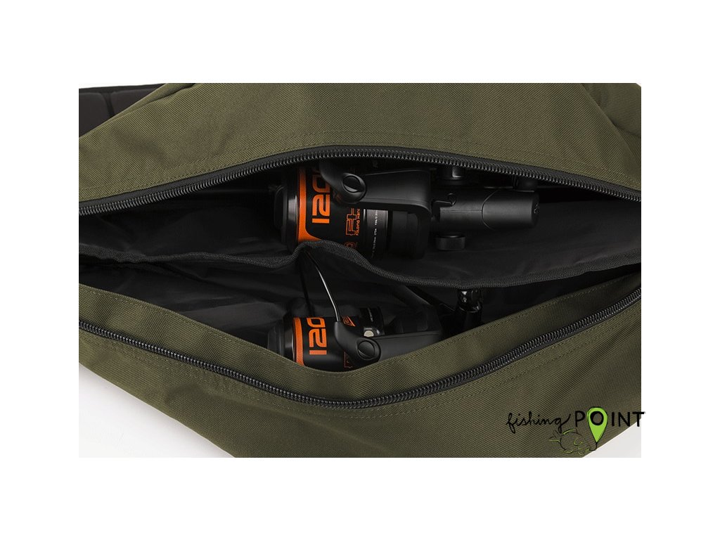 Nová voděodolná pevná tkanina 400 denier polyester Ideální pro dva pruty i s navijáky Tvarovaný profil pro pruty s 50 mm prvním očkem a velkými big pit navijáky Ideální pro rybáře, kteří používají pouze dva pruty Ideální pro uložení markerového a spodového prutu Vnější kapsa pro uložení podběráku Odnímatelný, polstrovaný ramenní popruh Vysoce odolný a spolehlivý dvojitý 10mm zip K dispozici ve verzích 10ft a 12ft Hlavní vnější materiál 100% Polyester, Výplň 40% Polyurethan/60% Polyethylen, Podšívka 100% Polyester Rozměry: 12ft: 192cm x 34cm x 26cmDoplňkové parametry