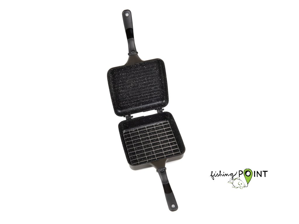 Cookware Multi-Pan – 198mm x 185mm x 45mm, hladká polovina – výška 22,5mm, grilovací polovina – výška 22,5mm.