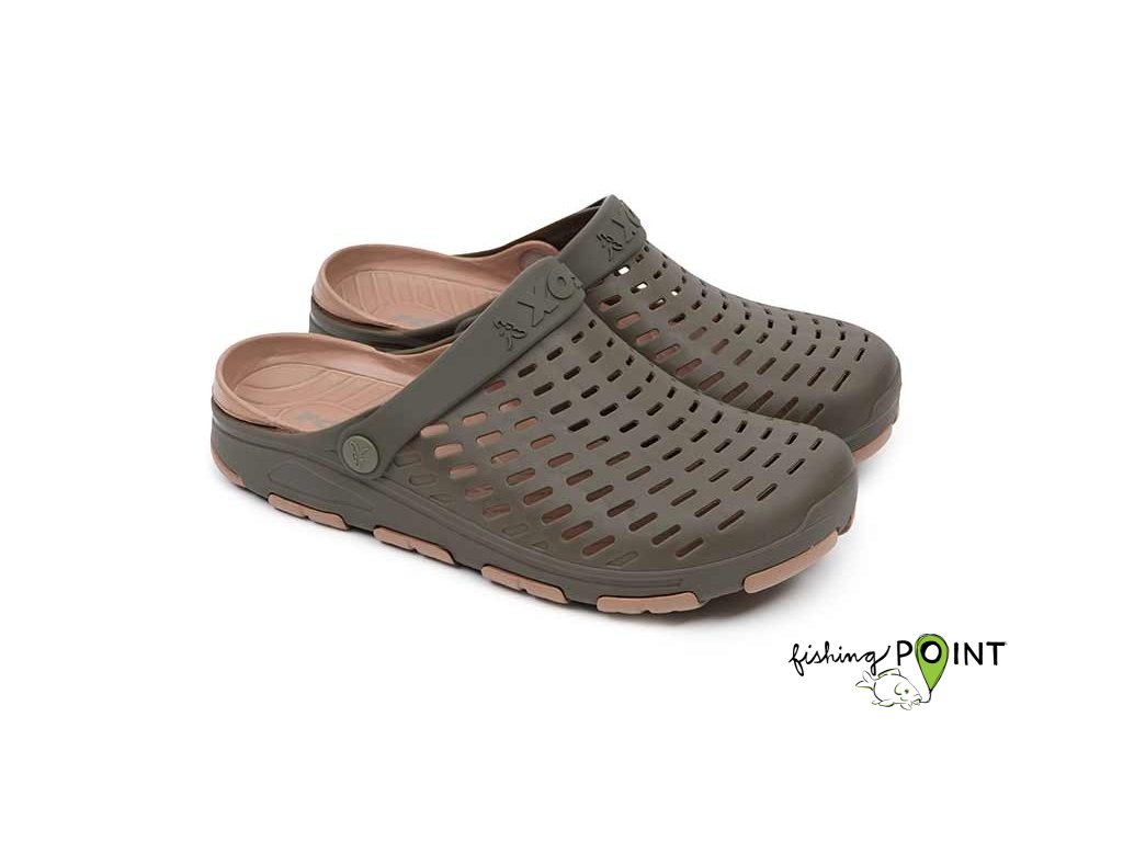 Pohodlné khaki pantofleIdeální pro nošení v bivaku a rychle obutí při záběru