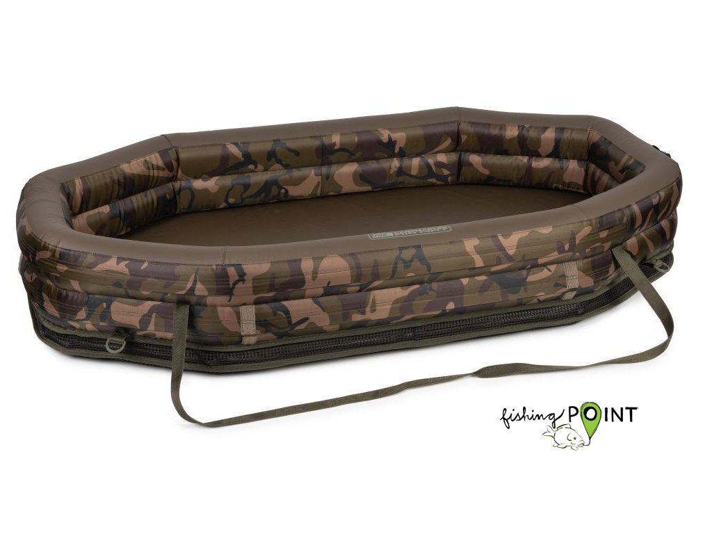 Oválná nafukovací podložka, navržená pro maximální ochranu ulovené ryby se svrchní polyesterovou látkou Fox camo.