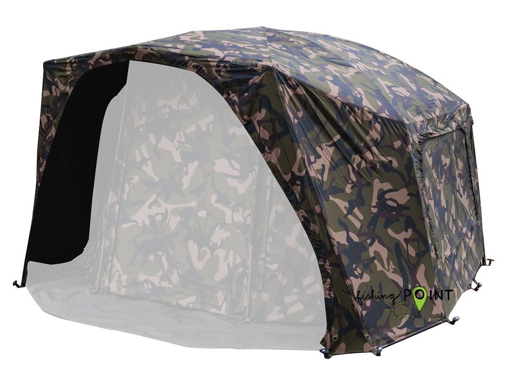 Kompletního zakrytí se dosáhne odepnutím předního panelu z bivaku a jeho připnutím na přehoz. Pro dosažení optimálního proudění vzduchu jsou čtyři větrací otvory s dvojitými zipy zarovnané s větracími otvory na bivaku, zatímco přes spojky připojené podpěrné tyče přidávají rozšiřujícímu žebru rámu na stabilitě.Snadno se zajišťuje s pomocí pásků na suchý zip a D-oček.V nabídce v zeleném i camo provedení.
