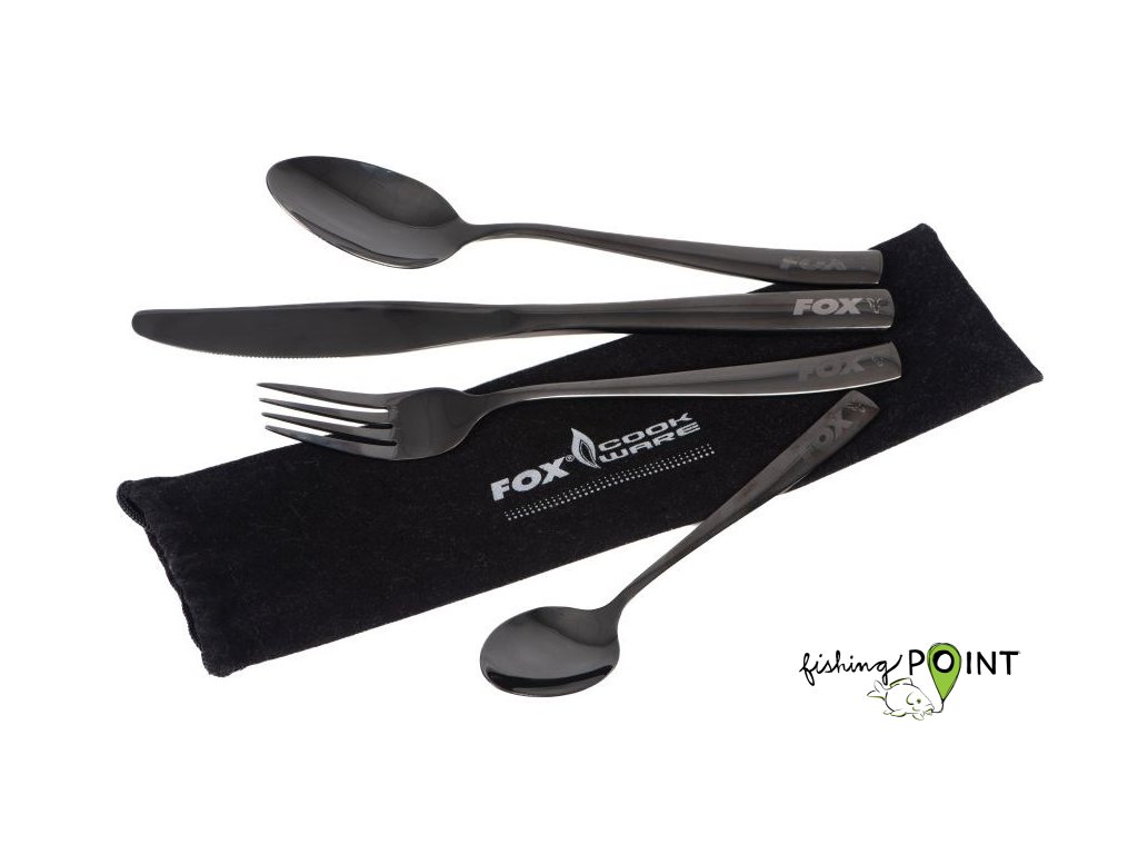 Obsahuje kávovou lžičku, nůž, vidličku a lžíci s logem Fox.