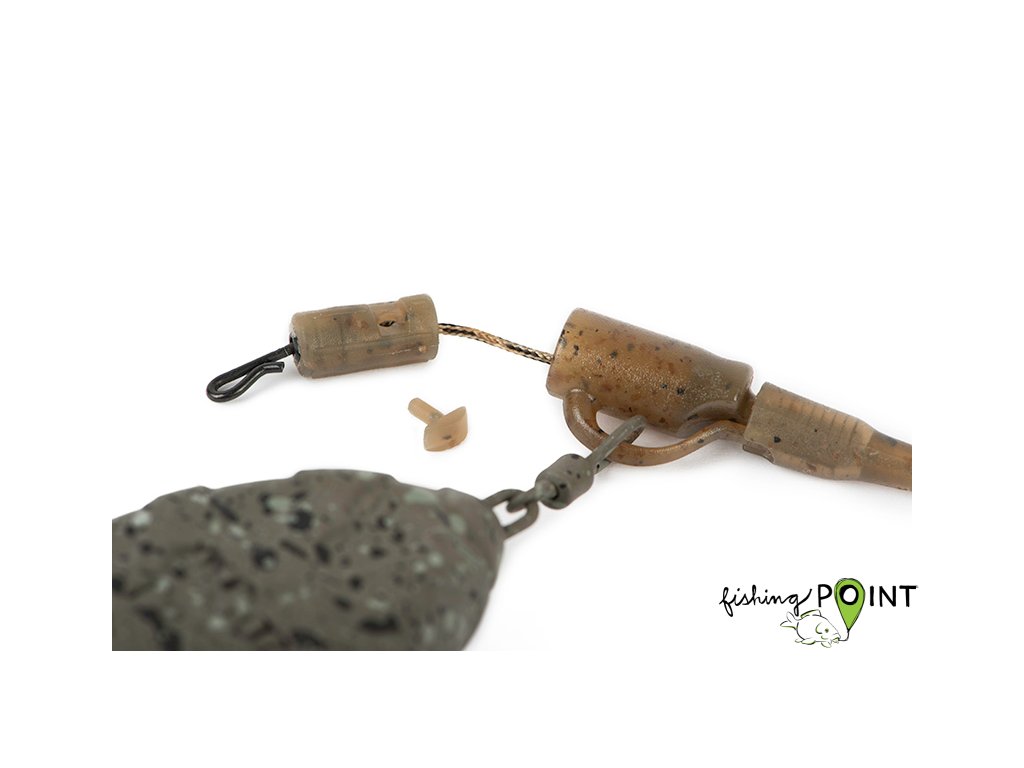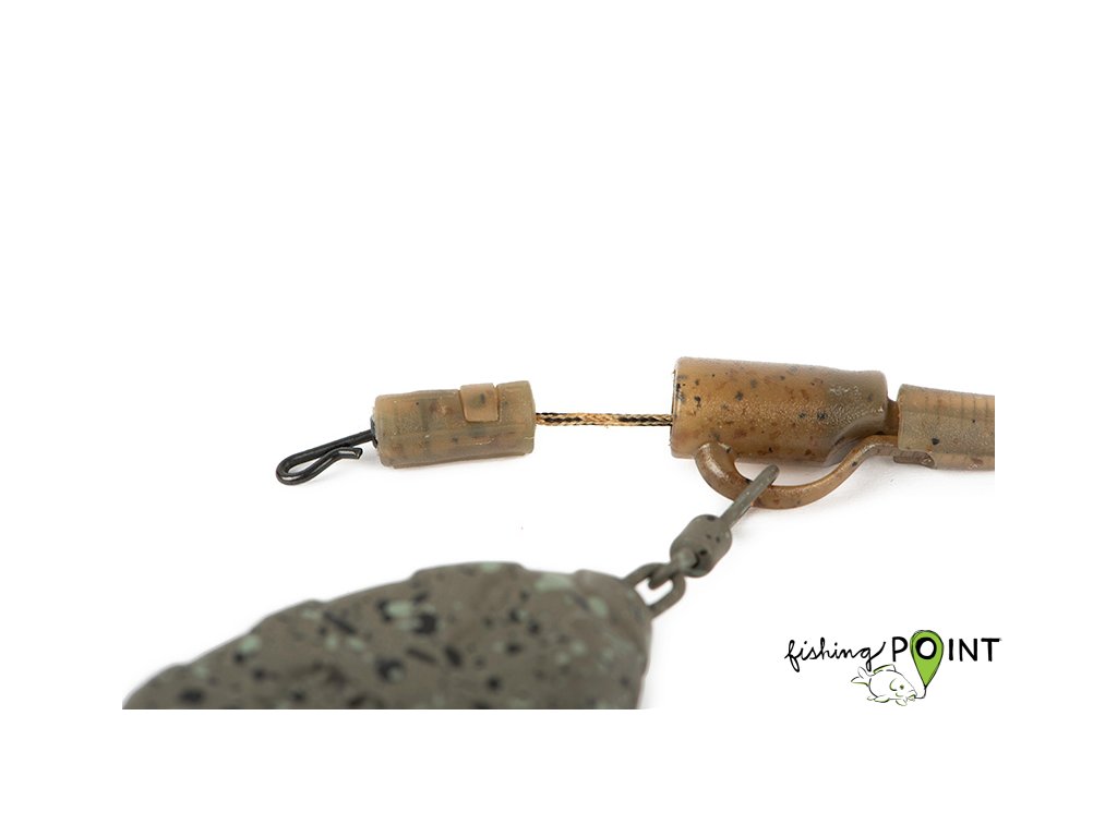Průběžná závěska Running Safety Clip obsahuje unikátní gumovou vložku, která se umístí do samotné závěsky. Když se ryba zasekne klip sklouzne z vložky a celá udice se stane průběžnou. To zajistí že kapr nedokáže využít hmotnosti zátěže, aby se zbavil háčku a vy pokaždé nepřijdete o použitou zátěž.Safety Clip style setup je navržený jako fixovaná montáž, která se po záseku stane průběžnou