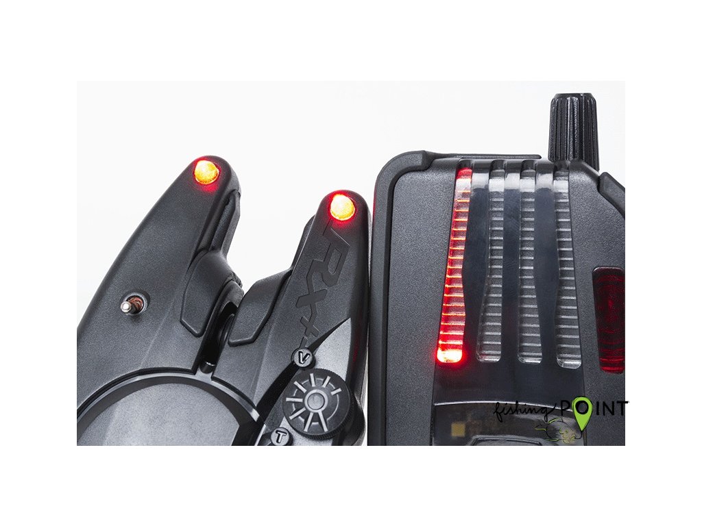 Vlastnosti• Ultra-Long Range™• Digitální obvody• Signalizace slabé baterie• Indikátor nabití baterie při zapnutém přijímači (4 x zelená kontrolka LED signalizuje plné/ částečně plné baterie, 3x zelená LED dioda – lehce vybité baterie, které ještě nepotřebují vyměnit, 2 x oranžová LED indikuje, že baterie mají nízký stav, 1 x červená LED dioda indikuje, že baterie jsou vybité a potřebují vyměnit)• Upozornění na vybité baterie (LED diody budou svítit azurovou barvou)• Upozornění na vybité baterie signalizátrů (pokud je RX+ signalizátor nastaven na indikování nízkého stavu baterie, změní barvu signalizace na příposlechu u daného signalizátoru na azurovou)• Signalizace pomocí vibrací (pomocí spínače na zadní straně)• Funkce osvětlení v bivaku (pomocí spínače na zadní straně, podrobnost viz níže)• Alarm proti krádeži• Snadné spárování se signalizítory RX+ Micron (pomocí přepínače na zadní straně)• Indikátory LED s technologií Colour Sync™• Zapnuto/Vypnuto a nastavení hlasitosti• Vysoce kvalitní kuželový reproduktor• Upevňovací oko šňůrky• Vyžaduje 3 x AA baterie