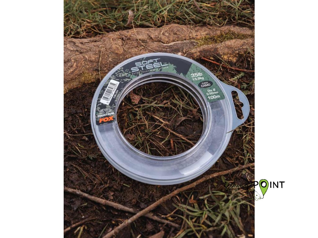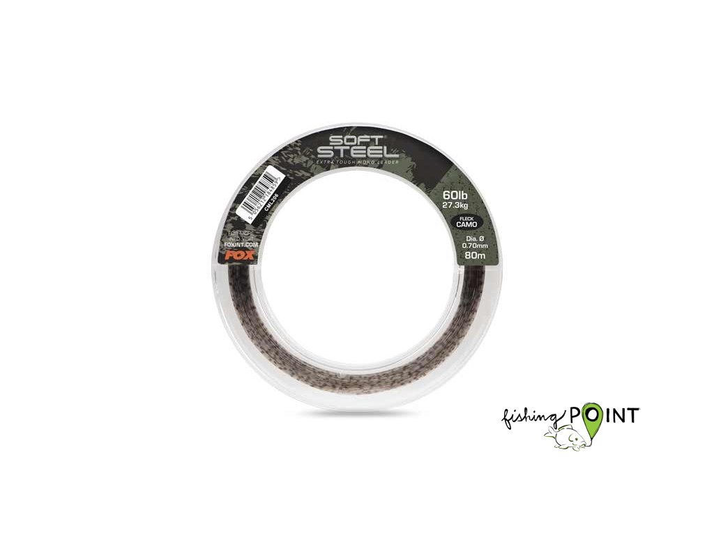 Fox International Šokový vlasec Soft Steel Fleck Camo Leader 60lb (27.3kg) 0.70mm x 80m