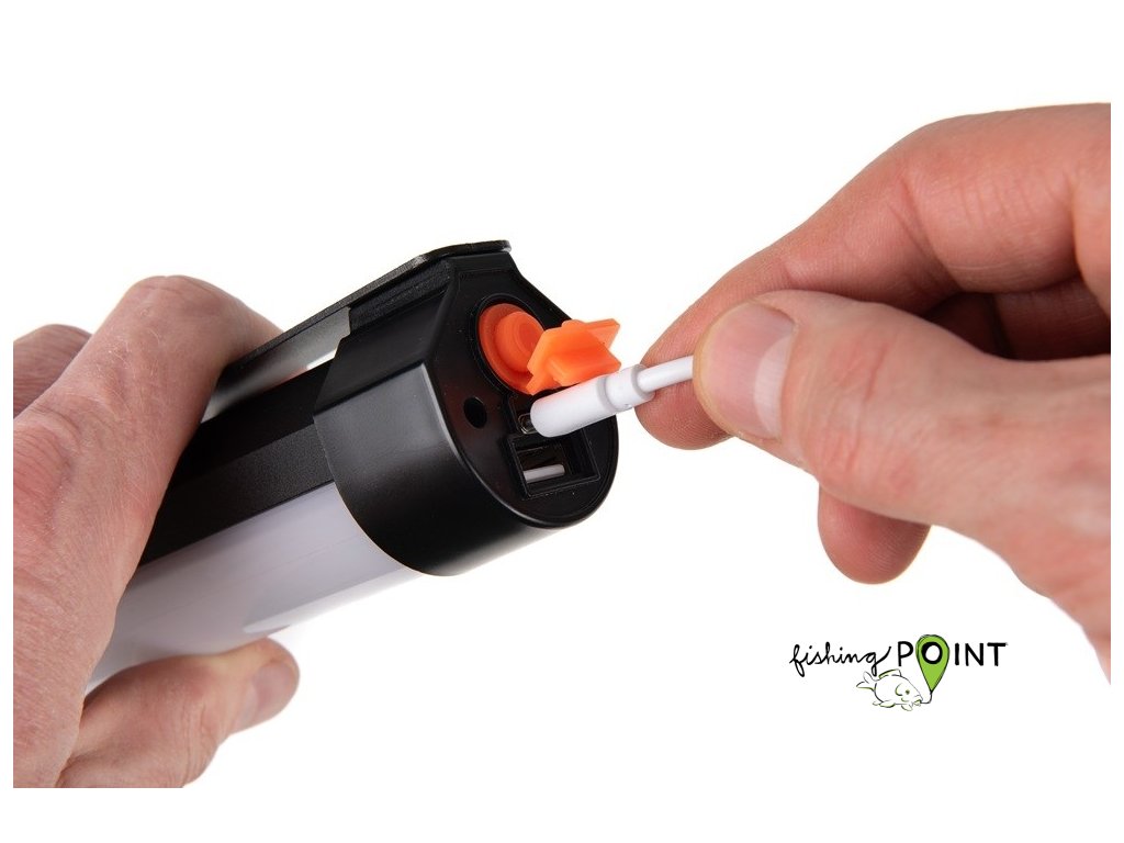 Nabíjecí port USB-C a výstup USB pro použití jako nouzová powerbanka.