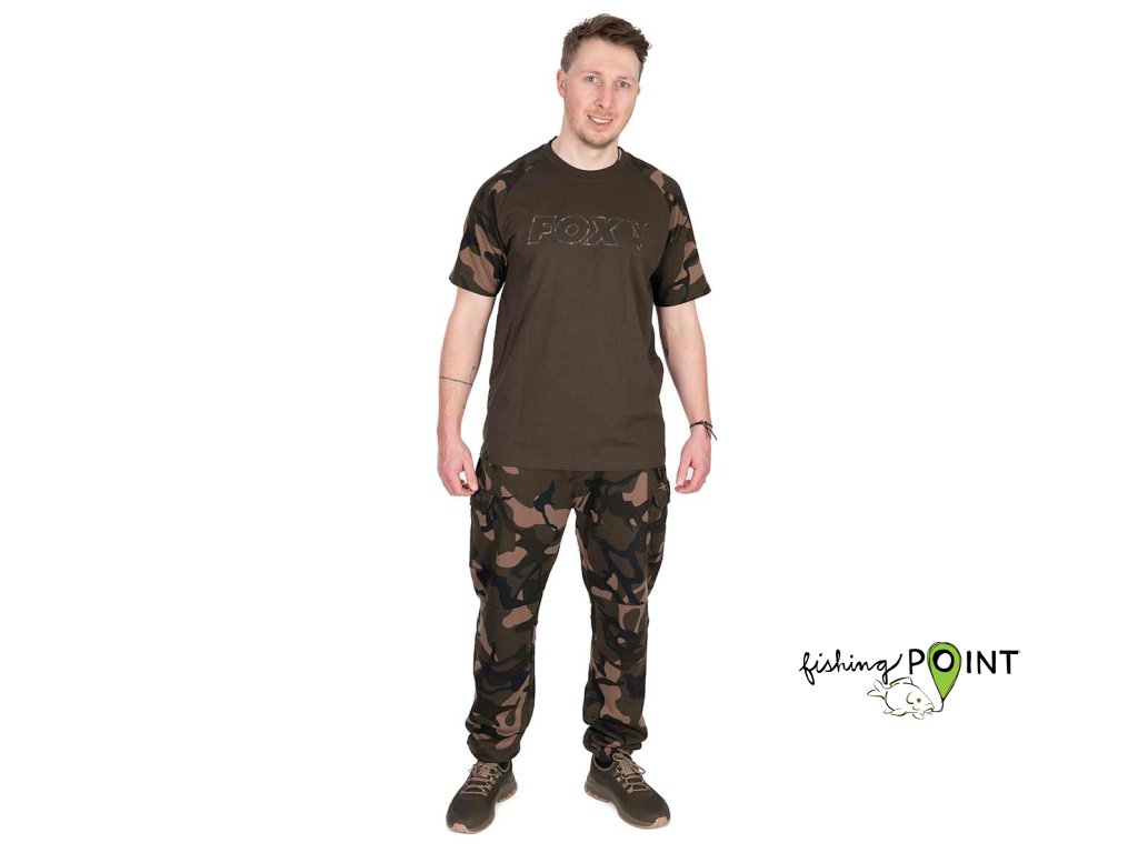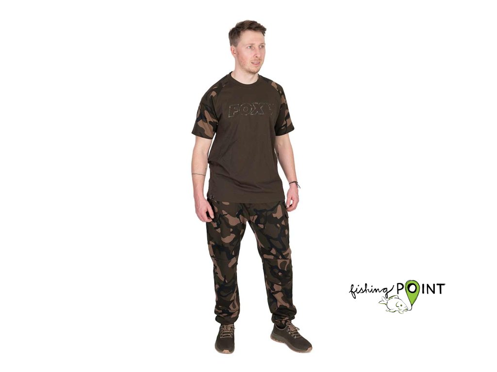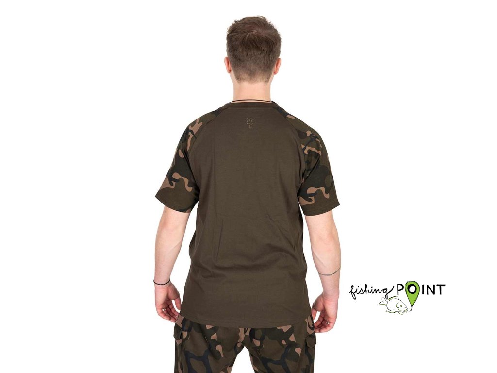 Khaki triko s Fox camo raglánovými rukávyVelké přes hrudník natištěné camo Fox logo