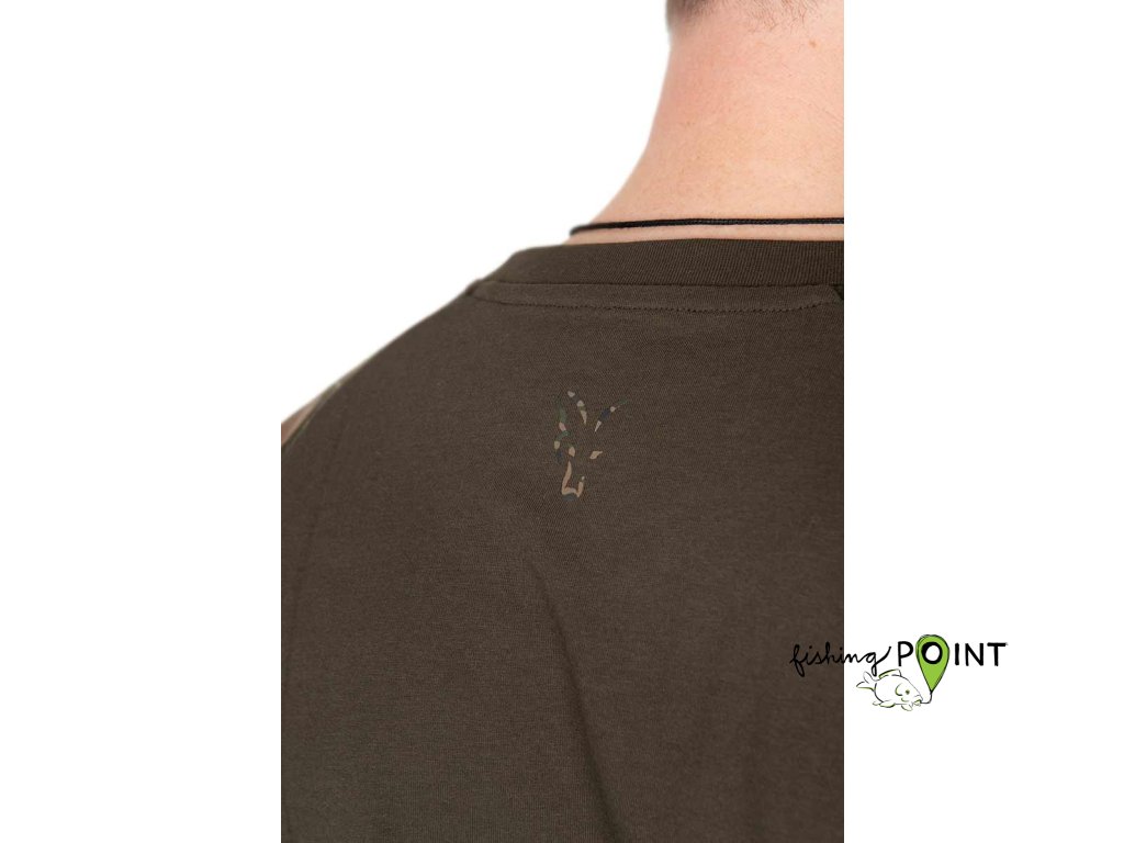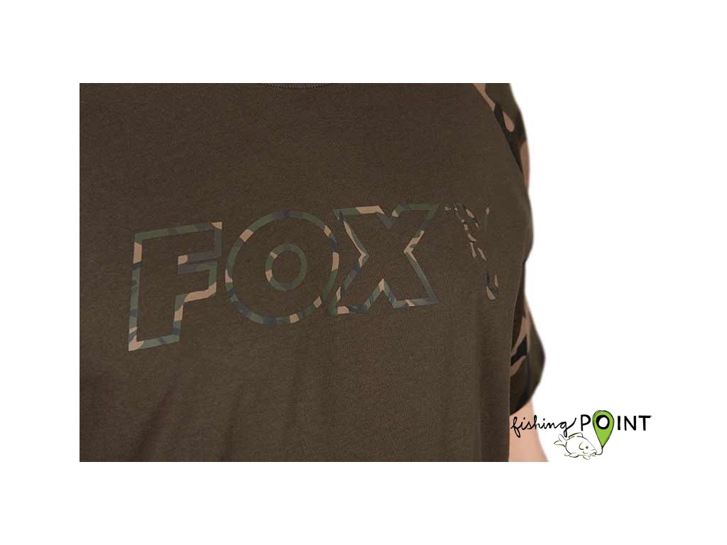 Khaki triko s Fox camo raglánovými rukávyVelké přes hrudník natištěné camo Fox logo