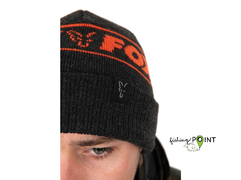 Fox International Zimní čepice černě melírovaná s oranžovým Fox znakem Beanie B/O