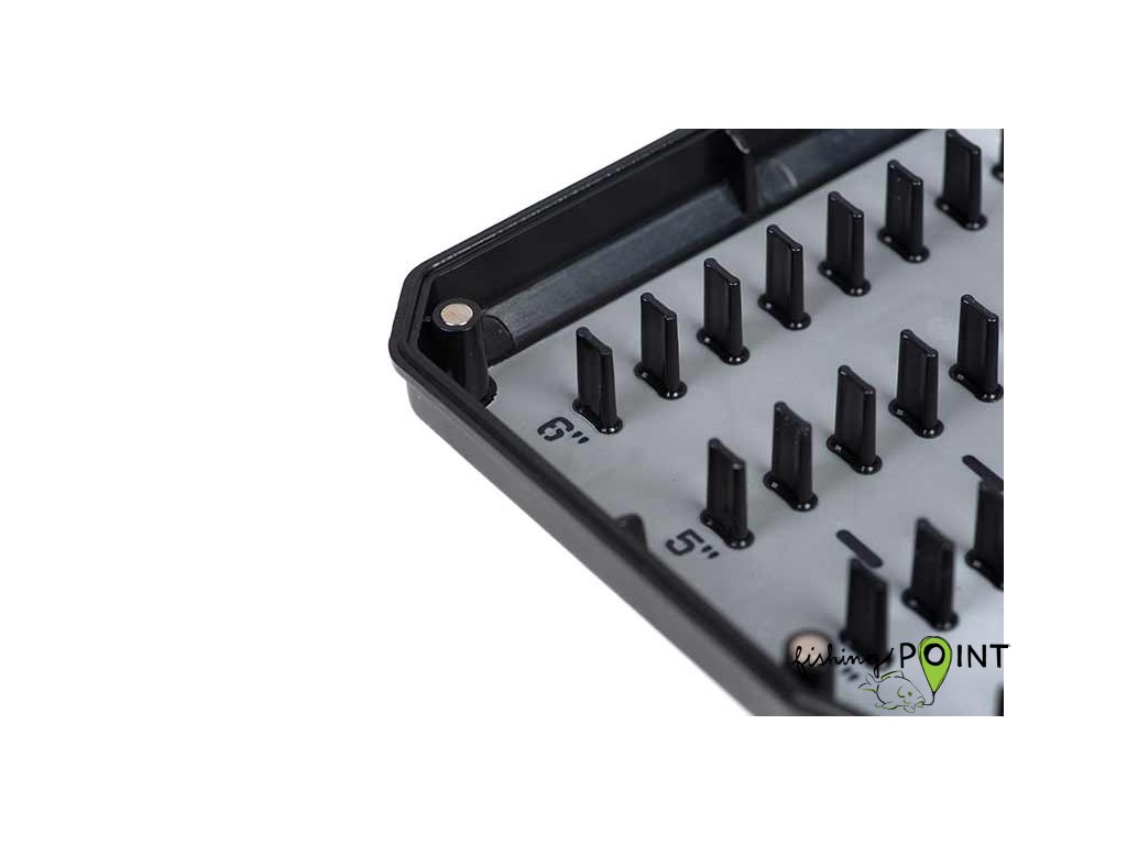 Krátké pouzdro na návazce ideální pro návazce v délce 5 a 15 cm18 kolíčků na háčky každý až pro 10 háčků (180 háčků celkem).