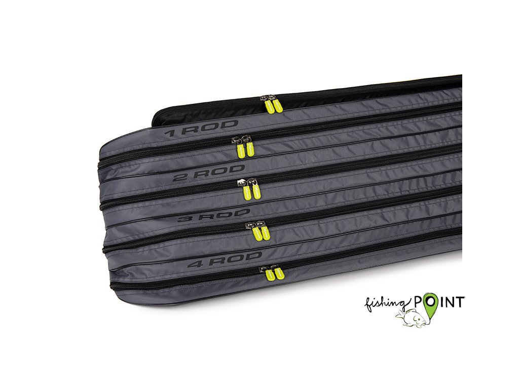 Pouzdro navržené pro komfortní přepravu čtyř navázaných prutůPevná PE deska tvoří tuhou vnější část pouzdra chránící pruty při převozu