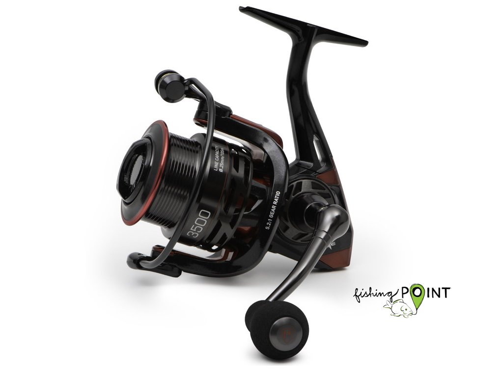 - Naviják má přední brzdu, pevnou a robustní konstrukci s anti-reverse systémem, kovovou cívku, tvarovanou rukojeť kličky a velkou rolničku pro snížení kroucení vlasce.