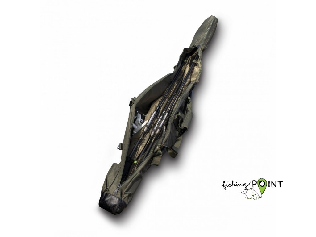 Pouzdro Master Combo pojme 2 až 3 kompletně sestavené pruty a k tomu i další příslušenství, jako je například podběrák, deštník, vidličky, carbonová tyč a další. Pouzdro je multifukční, detailně propracované, perfektně zpracované, silně polstrované, má silný kovový zip a komfortní nastavitelný popruh. Je dostatečně dlouhé a široké, aby snadno pojmulo dva nebo tři kompletně sestavené pruty s velkými navijáky. Vrchní materiál v decentní zelené barvě je vodoodpudivý. Vnitřek je z jemnější tkaniny, mezi tím je dostatečně silné polstrování. Všechny tři vnitřní komory jsou od sebe oddělené polstrovanou výplní, ta prostřední má navíc suché zipy na úplné uzavření. Suchý zip na uchycení prutu je i ve všech třech komorách. Úchopy pro ruční přenášení mají zesílenou výztuž, kterou lze spojit obě poutka k sobě, silně polstrovaný popruh umožňuje nastavit jej podle vaší výšky. Na spodku pouzdra je bytelné pogumování chránící proti vlhku a bahnu. Po obou vnějších stranách jsou kapsy a nad nimi ve dvou úrovních suché zipy, které umožňují uchycení dlouhých předmětů, jako je tyč k podběráku, vidličky, deštník atd. Decentní logo Garda ve vrchní části podtrhuje skvělý design produktu. Pouzdro na prut Master Combo 12ft – délka 200 cm, šířka nahoře 23 cm, šířka dole 35 cmDoplňkové parametry