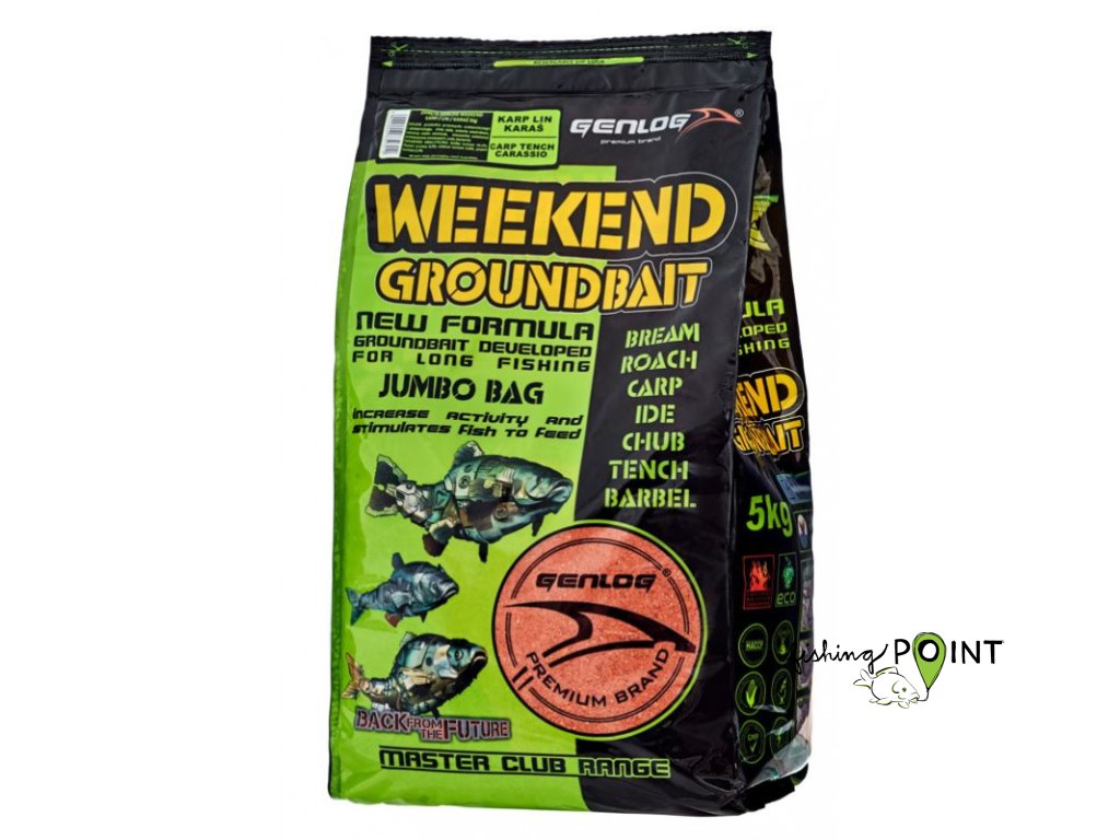 Krmná směs GENLOG WEEKEND, jak už název napovídá, byl vytvořen pro rybáře, kteří se chystají na několikadenní rybářský výlet. Směs byla testována v českých i evropských podmínkách. Vytvořeno rybáři pro rybáře. Krmivo Weekend bylo připraveno pro nejoblíbenější druhy ryb. Dokonale přitahuje kaprovité ryby, zejména kapra, lína a karase. Sortiment krmení Weekend je přizpůsoben několika možnostem použití, od druhů ryb, typu rybolovu, až po způsob vnadění. Ekonomické balení tohoto skvělého krmení by mělo vystačit minimálně na 2 dny rybaření.Doplňkové parametry