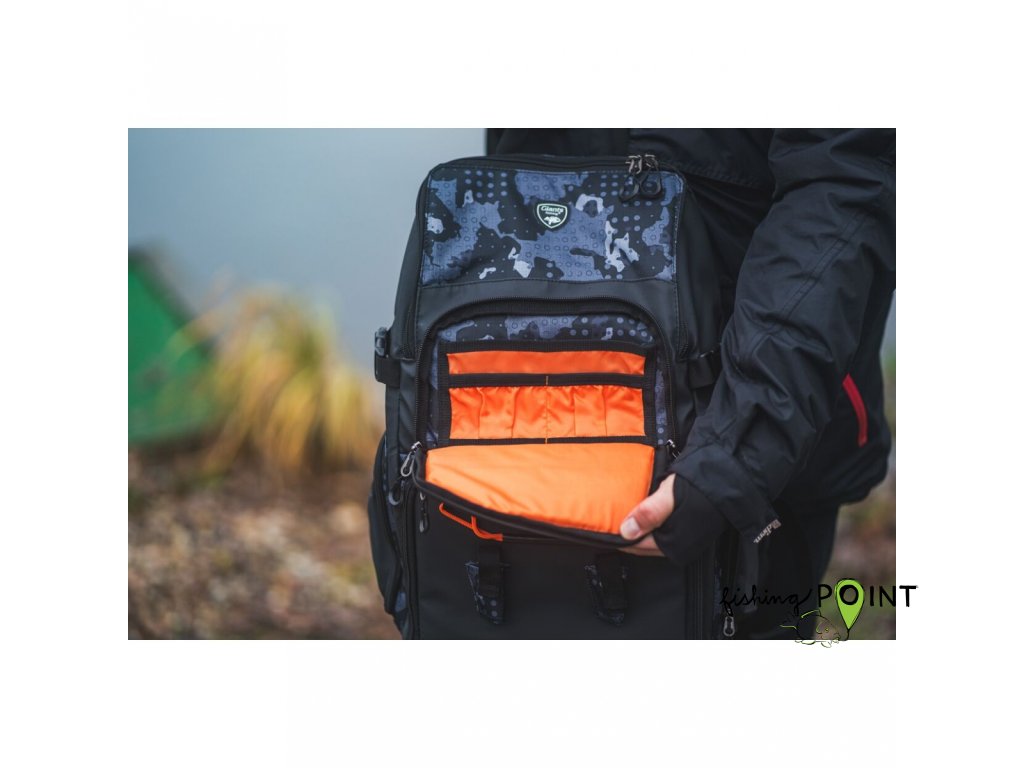 Propracovaný luxusní vláčecí batoh, do kterého uložíte jak Vaše nástrahy, tak oblečení či polarizační brýle. Po bocích můžete uchytit Váš prut, nebo skládací podběrák.- Ramenní popruhy s odvětráváním a měkčené komfortní madlo