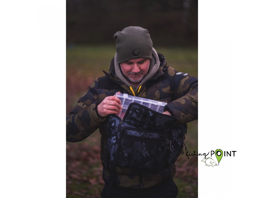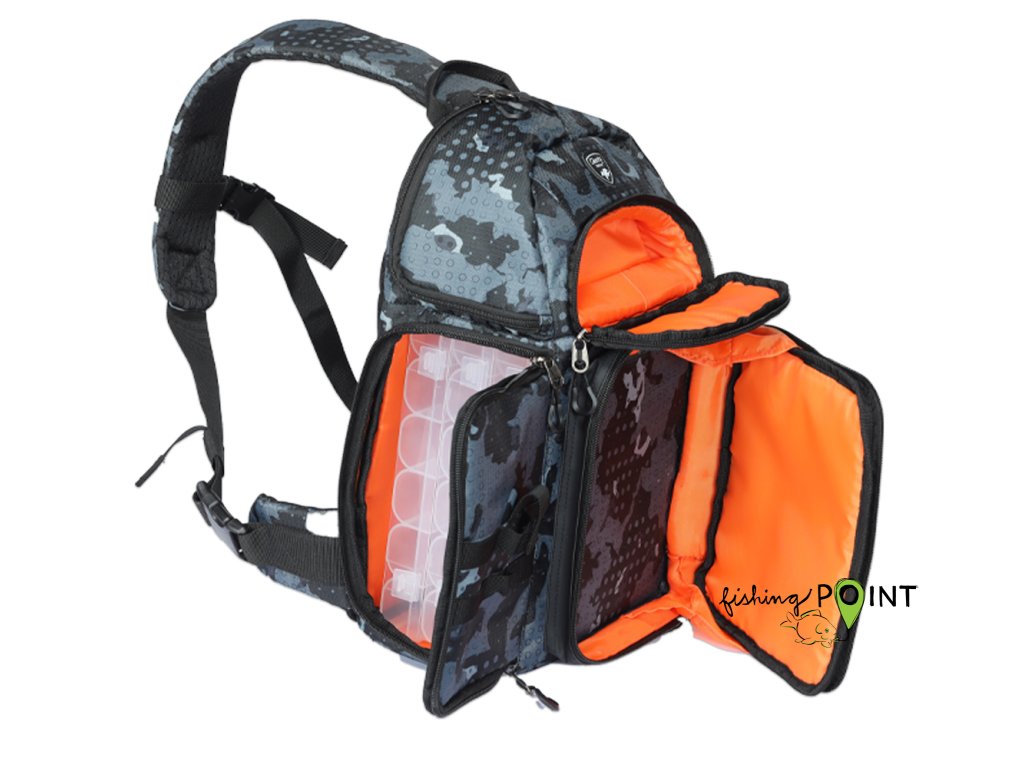Vláčecí batůžek s jedním ramenním popruhem, který můžete mít stále u sebe a při výměně nástrahy si ho jednoduše přetočíte na hrudník.- Batoh je dodáván včetně tří krabiček, které naleznete ve spodní části