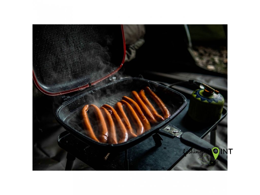 Oboustranná pánvička s nepřilnavým povrchem Non-Stick , silikonovým těsněním a v krásném designu, je důležitou součástí každého rybáře kuchaře. Vysoce kvalitní hliníkový materiál je ideální na pečení, grilování, opékání či smažení nebo přípravu toastů. Díky vysoce kvalitnímu materiálu se příprava jídla sníží až o dvojnásobek času oproti klasickým pánvím. Vyšší hmotnost pánve je zárukou použití vysoce kvalitních materiálů a navíc se stará o stabilitu na vařiči. Ergonomická rukojeť s magnetickým klipem zaručuje bezpečnost při přenášení a otáčení. Pánvička má navíc jednu stranu mělčí a druhou hlubší, což je ideální pro různorodé pečení a vaření. Specifikace: - průměr 32 cm (rozměry bez rukojeti): 32 x 25 x 6,6 cm - průměr 32 cm (rozměry s rukojetí): 46 x 32 x 6,6 cm - použitý materiál: Non-Stick PTFE materiál známý jako Teflon - magnetický klip pro bezpečnost přenášení a otočení - ergonomická rukojeť - vnitřní silikonové těsnění + 1 navíc - přetlakový otvor - hmotnost: průměr 32 cm – 1,4 kg Příbory - Praktická příborová sada, která je vyrobená z černé nerez oceli. Sada je dodávána v praktickém textilním obalu uzavíratelném na zip.Sada obsahuje: Polévkovou lžíci, vidličku, nůž a čajovou lžičku. Hmotnost: 236g Délka včetně nylonového obalu: 25cmDoplňkové parametry