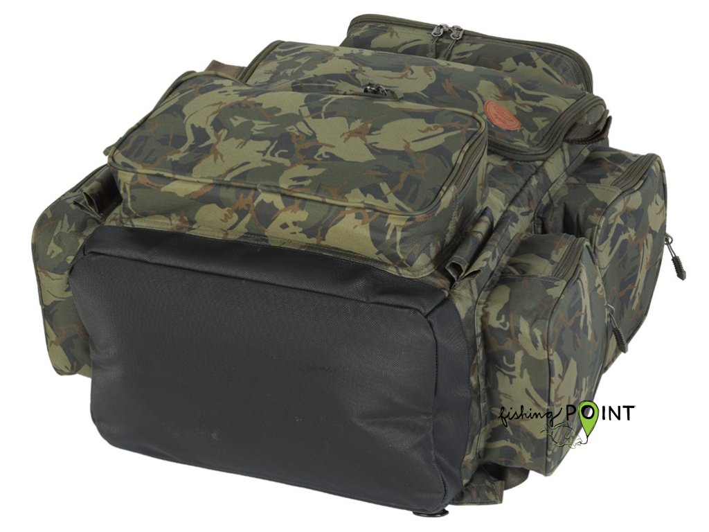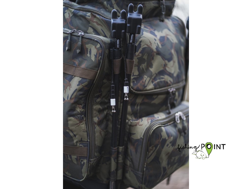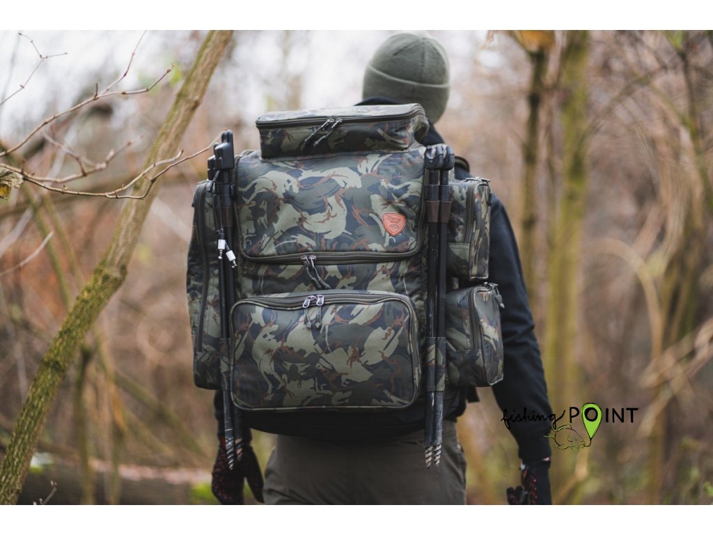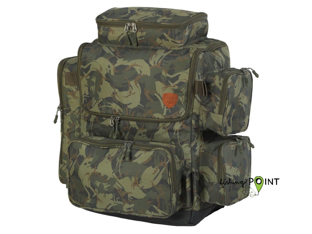 Opravdu obří batoh s objemem 110litrů a velkým množstvím vnějších, tak vnitřních kapes. Luxusní batoh který má v přední části poutka na čtyři zavrtávací vidličky, které díky tomu máte rychle k dispozici.- Velký robustní batoh pro delší výpravy - Pět vnějších kapes po stranách - Robustní ramenní popruhy - Poutka na podběrák a vidličky - Na zádové části dva D kroužky pro uchycení podložky