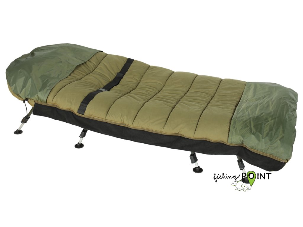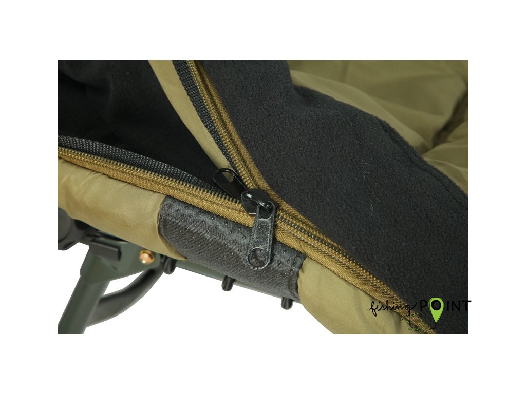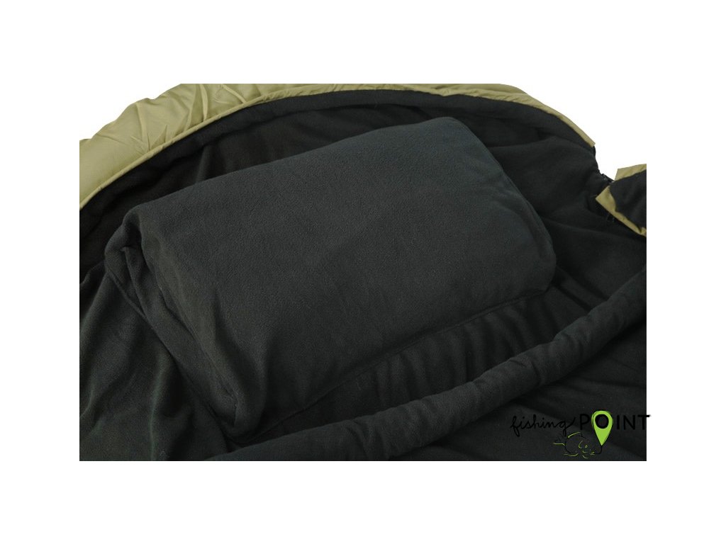 Plně prošívaný microfleece černé barvy je vyplněn 100% dutým vláknem pro extrémní teplo a komfort. Ve vnitřní části spacího pytle naleznete kapsu na zip, která je určena pro mobilní telefon. Pod hlavou je na zip odnímatelný polštářek, který zajistí opravdový komfort. Na obou stranách spacího pytle (u hlavy a nohou) jsou ze spodu našité převleky, které se pouze přetáhnou přes vršek a spodek lehátka a zajistí tak neomezený a bezpečný pohyb. Ve střední části spacího pytle je popruh, který se díky přezce snadno upevní k lehátku a zabrání kroucení spacího pytle. Nově jsou u tohoto modelu překryty boční zipy z vnější strany, aby se zabránilo nežádoucímu úniku tepla. Spací pytel je dodáván s přenosnou taškou.