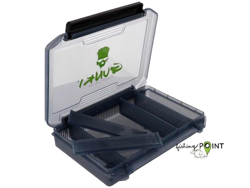 Krabička na nástrahy s posuvnými přihrádkami a praktickým otevíráním z obou dvou stran.Rozměr: 20,5x15,5x3,5 cm.