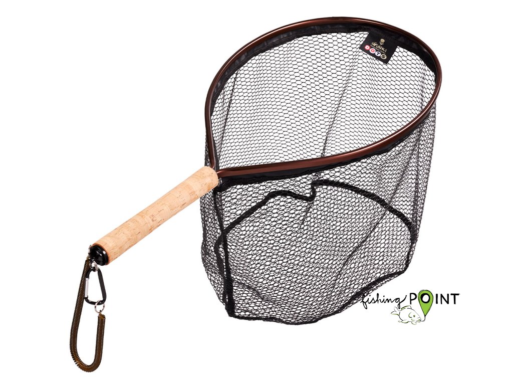 Lehký podběrák pro lov pstruhů a jiných ryb při brodění. Pogumovaná síťka pro maximální šetrnost k rybám. Odlehčený rám a rukojeť potažená korkem pro příjemnou manipulaci. Na konci rukojeti je magnetický úchyt s pružným lankem a karabinou pro připevnění na vestu nebo tašku. Délka 65 cm, rozměr 30x40 cm, hloubka 28 cm, síťovina 8x8 mm, váha 268 g.Doplňkové parametry