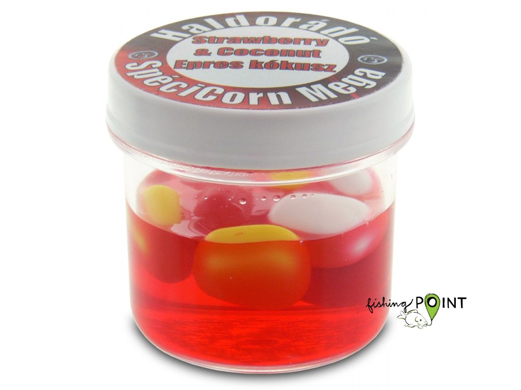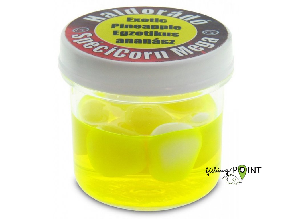 Můžeme si být jisti tím že dříve nebo později ryba ucítí neodolatelnou aroma této nástrahy. SpéciCorn Mega jak už i její název napovídá je 3x větší než klasická gumená kukuřice. Každý kelímek obsahuje 2 různé barvy kukuřice. Žlutou „základní nástrahu” najdeme ve všech příchutích které jsme doplnili o zrna které mají výraznou fluo barvu.