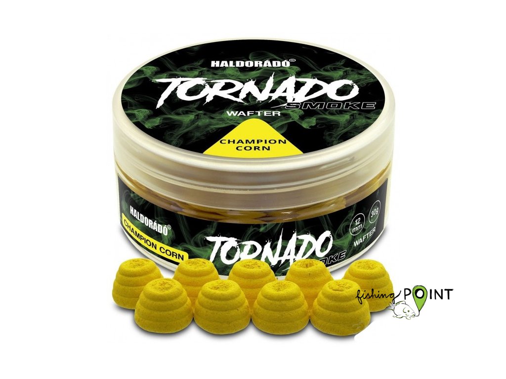 - TORNADO Smoke Wafter - Champion Corn: Žlutá nástraha se sladkou kukuřičnou příchutí, která uvolňuje fluouórově zelenou barvu.