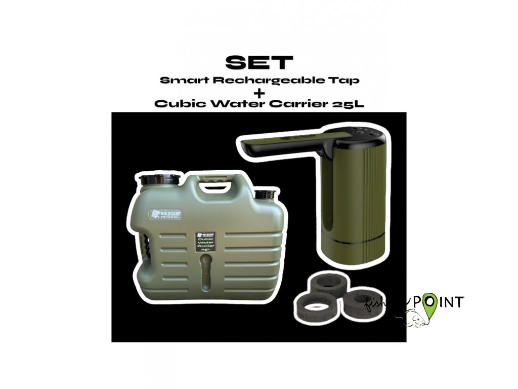 Akční set automatické pumpy a kanystru s objemem 11 l.Akumulátorová sklápěcí vodní pumpa, kterou lze umístit téměř na každý kanystr či nádobu s kulatým otvorem. Součástí jsou 3ks EVA těsnění s vnitřním průměrem 25, 40 a 45mm, silikonová hadička, USB kabel a návod k použití.Disponuje 3 samostatnými tlačítky:1. zapnout / vypnout2. 40 sekundové tlačítko (~800ml)3. 80 sekundové tlačítko (~1600ml)Parametry:Kapacita akumulátoru: 1200mAhVýkon: 4wNapětí: 5VVýdrž: 120-150L vody+Kanystr na vodu o objemu 11L se dvěma otvory. Součástí je flexibilní hrdlo a extra víčko s možností nastavení průtoku vody. 100% kompatibilní s Holdcarp Smart Rechargeable Tap.Parametry:Rozměry: 40 x 23 x 34cmHmotnost: 1.07kgDoplňkové parametry