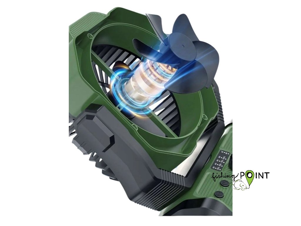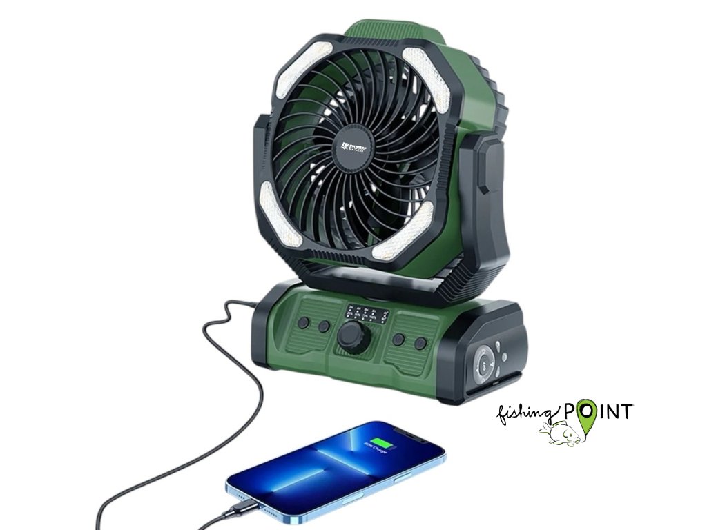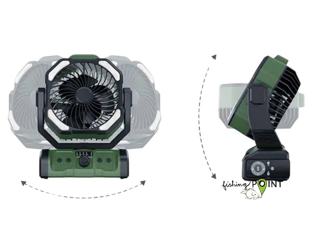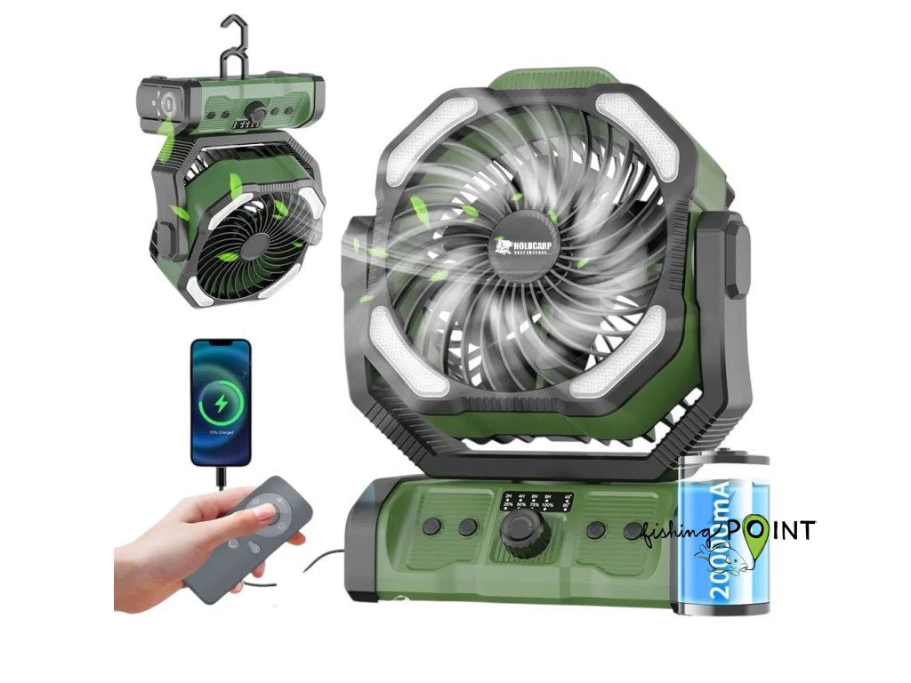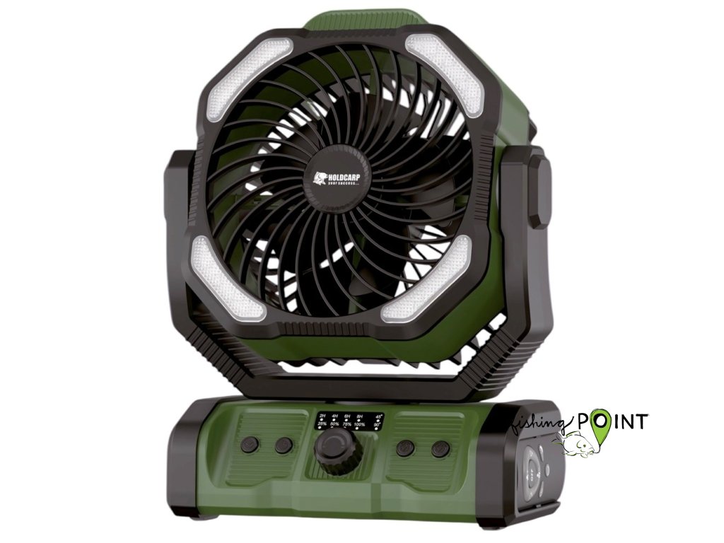 Holdcarp Rechargeable DoubleMotor Fan kombinuje špičkovou technologii s praktickými funkcemi, díky nimž je ideální pro kempování, rybaření, či večery na terase nebo zahradě.