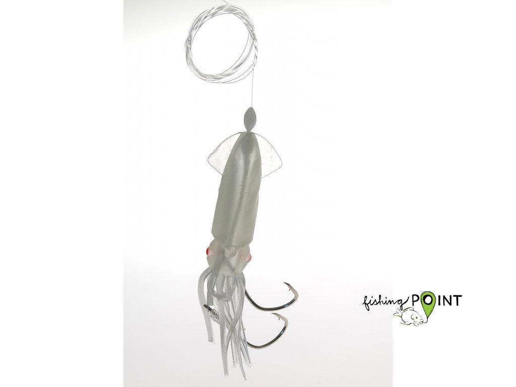 Návazec obsahuje velké a pevné háčky, fluorescentní chobotničku.Ideální je, přidat na háčky kus makrely.