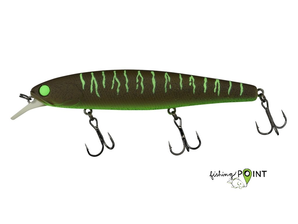 Délka 110 mm, hmotnost 18 g, potápivost 0,3-0,6 m, plovoucí nástraha.