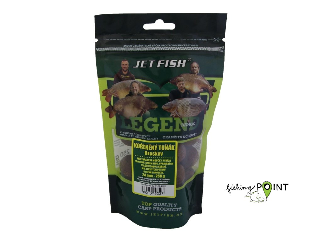 Jet Fish Boilie Legend Range Kořeněný Tuňák Broskev
