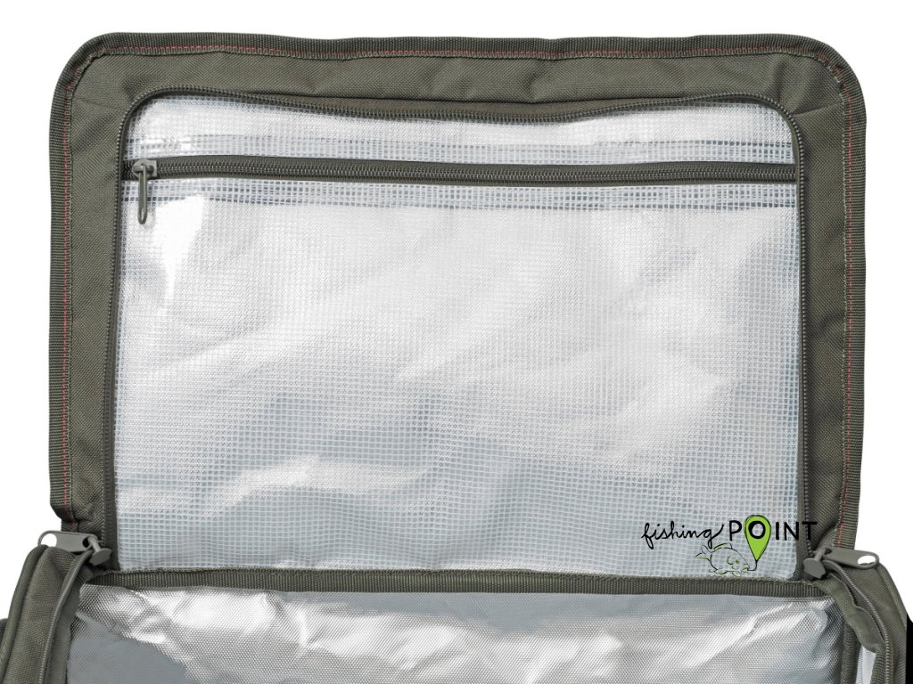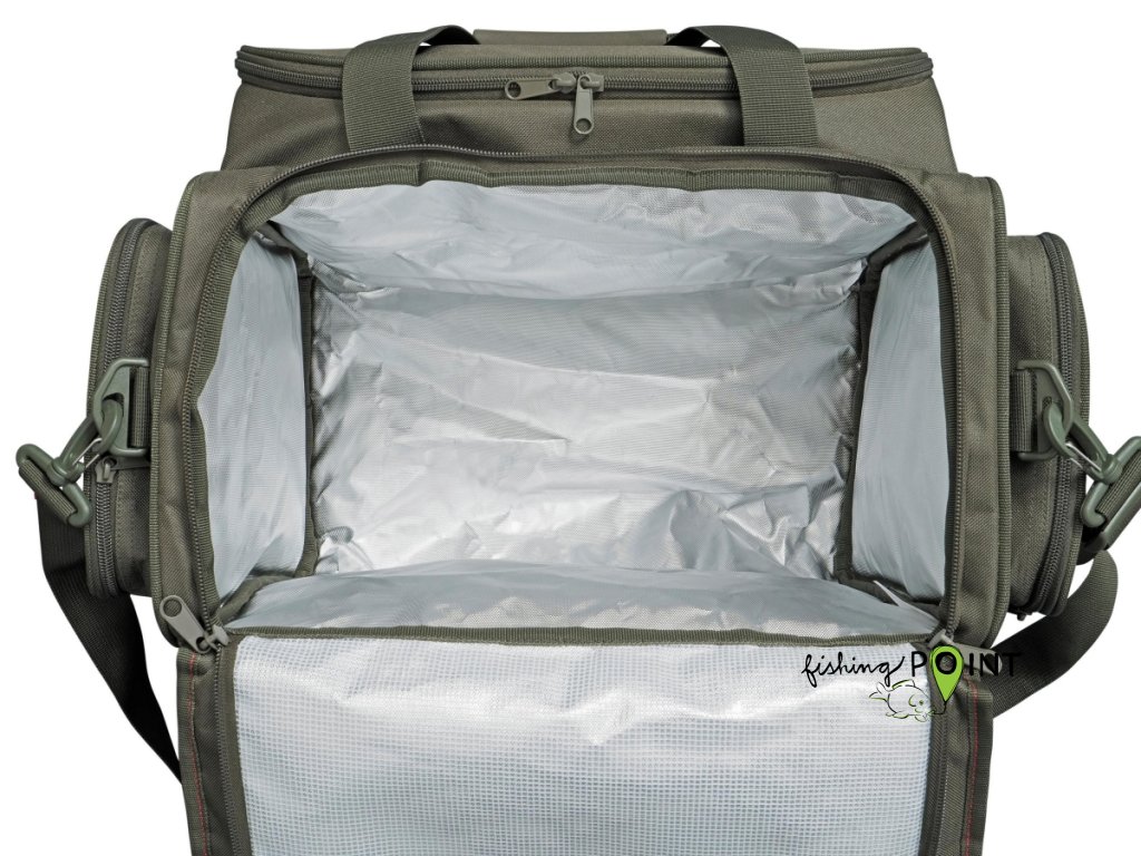 Tato taška je ideální pro jednoho nebo dva rybáře, má hlavní izolovanou přihrádku s otíratelným povrchem, sadu příborů, talířů atd. a dvě prostorné boční kapsy, do kterých se vejdou střední a malá pouzdra řady Defender.