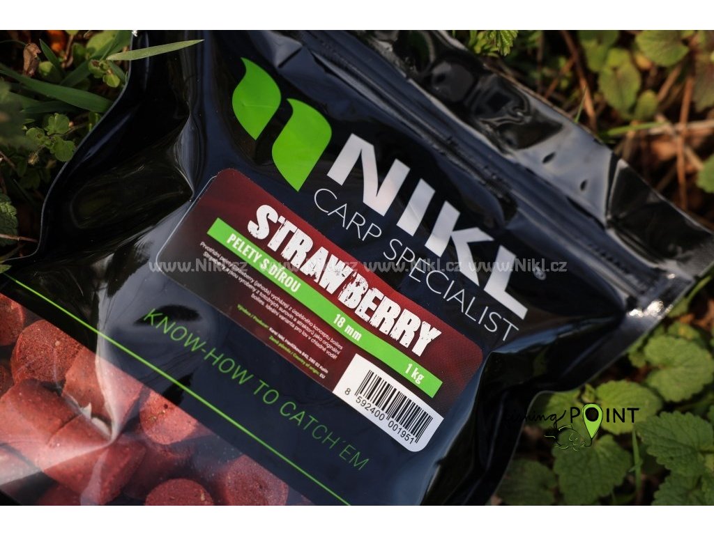 Karel Nikl Pelety Strawberry 18mm s dírkou, 1kg