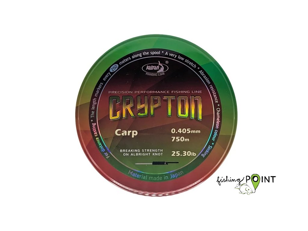Jedinečný vlasec je speciálně navržen pro chytání kaprů na dlouhé vzdálenosti. Byla použita inovativní technologie odrazu světla aby vlasec byl co nejméně viditelný ve všech vodách. V závislosti na úrovni jasu a úhlu pohledu se u vlasce změní barva od mechové až po hnědou. Rychle potápivý s nižší průtažností 13-14% vám poskytuje komfortní citlivost a kontrolu nad nástrahou a úlovkem. Je velice otěruvzdorný, pokryt leštěným povrchem, který chrání vlasec před usazením prachu a nečistot, takže zůstane čistý a hladký dlouho dobu.Každých 250 metrů najdete speciální značky zobrazující zbytek vlasce na cívce. Oceníte při navijení vlasce na cívku vašeho navijáku.Baleno do kovových plechovek, které jej dokonale chrání před ultrafialové zářením a mechanické poškození. Vysoká pevnost uzlu Velmi nízká průtažnost Odolnost proti oděru Barva chameleona Rychle potápiváPři výběru vlasce si vždy přejete získat nejvyšší kvalitu za nejlepší cenu. Crypton dobře splňuje oba tyto požadavky. Tato řada má dokonalé vlastnosti, vyhovuje nejvyšší úrovni vlasců v sortimentu Katran. Má jedinečnou schopnost náhodného zbarvení v závislosti na podmínkách lovu. Velmi hladký a elastický Nízká průtažnost, což je zvláště důležité v případě rybolovu na dálku Extra trvanlivý a odolný proti oděruDoplňkové parametry