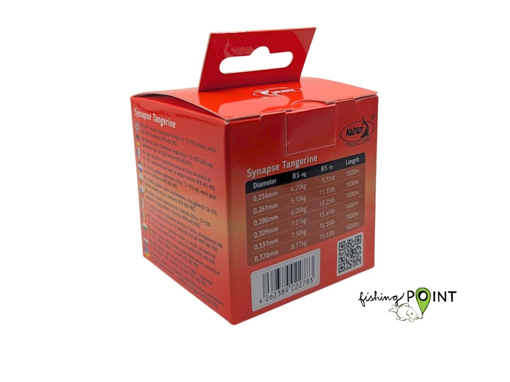 Katran Synapse Tangerine je vysoce kvalitní, jasně červenooranžový potápivý monofil určený pro dlouhé hody a dobrou viditelnost pro rybáře.