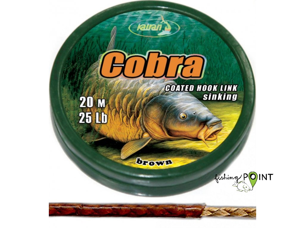Cobra je jemná návazcová šňůra s odstranitelným potahem s vysokou pevností. Jádro šňůrky je plovoucí - vhodná zejména na plovoucí a vyvážené nástrahy. Cobra je vyrobena ze dvou materiálů fluoropolimer a dyneema. Je hnědé barvy, na tmavém dně je téměř neviditelná. Šňůrka je pevná a oděruvzdorná. Vhodná i do toho nejtěžšího terénu. Má samozřejmě vynikající pevnost v uzlu. * Oděruvzdorný potah * Vysoká pevnost v uzlu * Hnědá barva