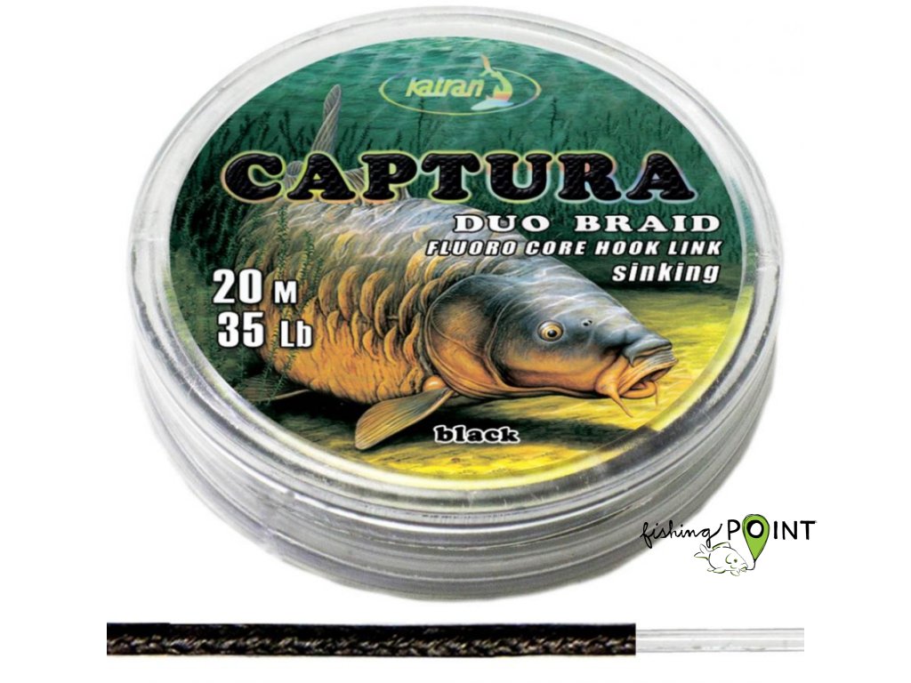 Captura je inovativní revoluční šňůrka v černém provedení. Je velmi tenká a zároveň měkká a silná. Je potápivá a dokonale kopíruje dno. Vnější vrstva je vyrobena z Dyneema vláken a jádro je vyrobeno z měkkého fluorocarbonu japonské kvality. Captura disponuje výbornými vlastnostmi vůči oděru. Můžeme ji použít do mušlových polí, na ostré kameny apod. Captura je tou správnou volbou při lovu kapitálních a opatrných kaprů.* Kombinované návazce bez uzlů * Středně tuhá * Rychlé potápivá * Flurocarbonové jádro